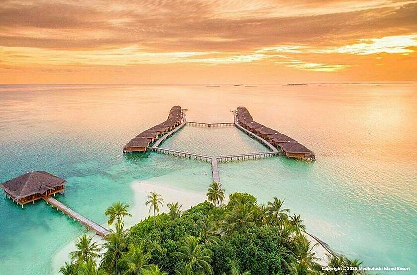 - L’hébergement sur la base d'une chambre double pour 7 nuits à l'hôtel Medhufushi Island Resort